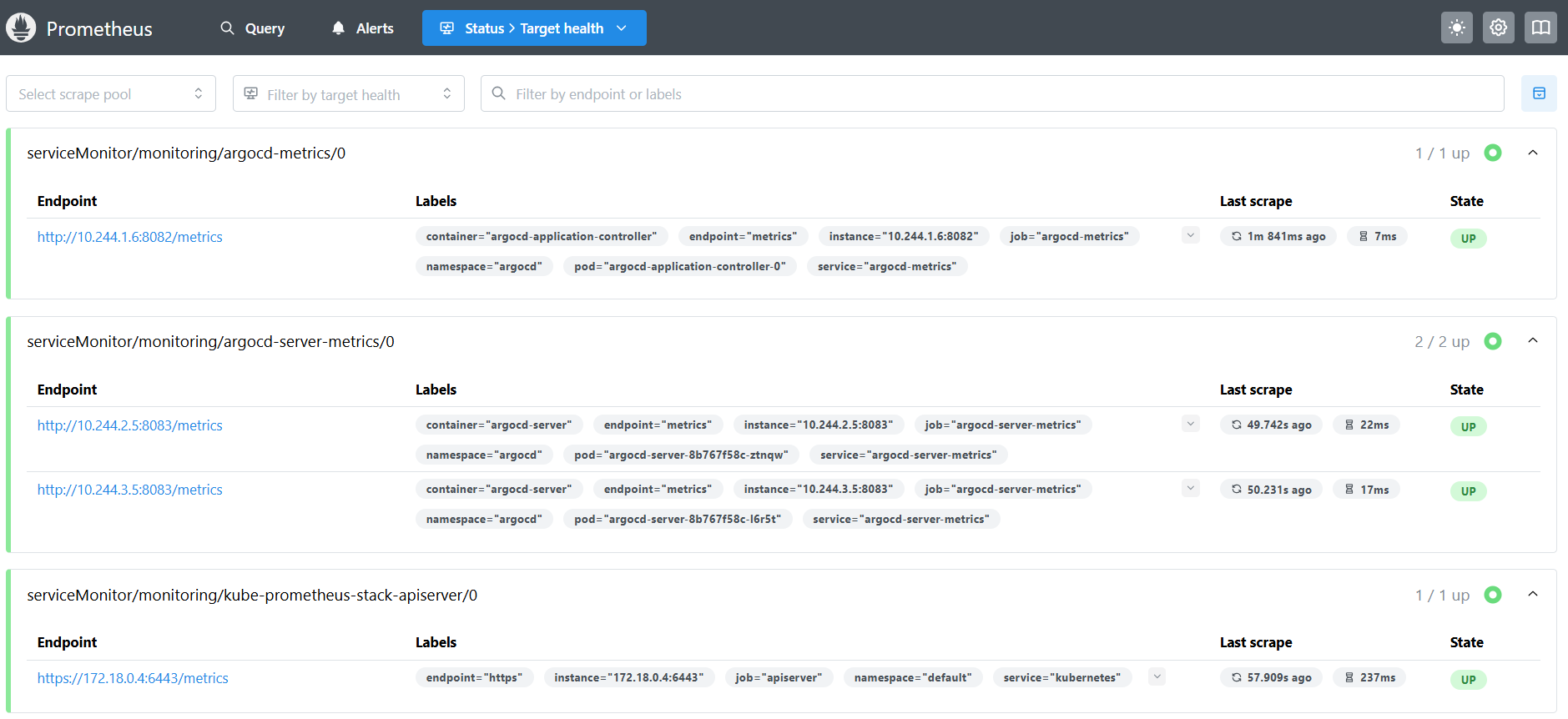 argocd argocd-server-8b767f58c-c99rl 1/1 Running 0 9m15s