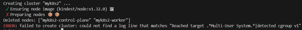 kind create cluster --name myk8s2 --image kindest/node:v1.32.8 --config - <<EOF