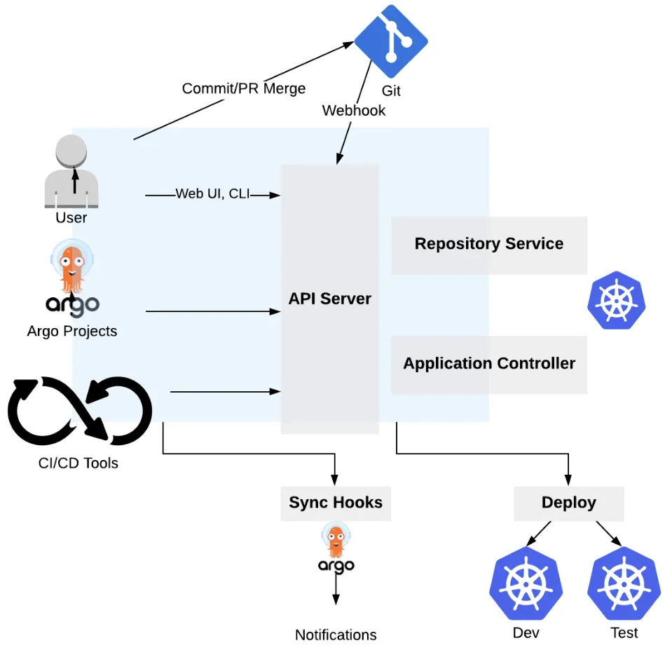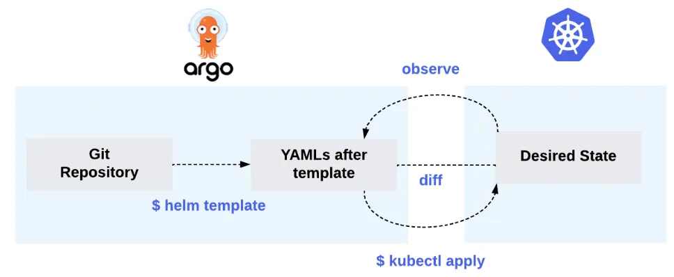 - Argo CD 또한 컨트롤 루프를 통해 깃 리포지터리에서 선언된 상태와 클러스터의 상태를 일치시키면서 컨트롤러로 동작한다.