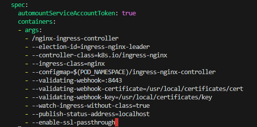 # args 에 아래 내용 추가 : SSL Passthrough 기본 비활성화 상태